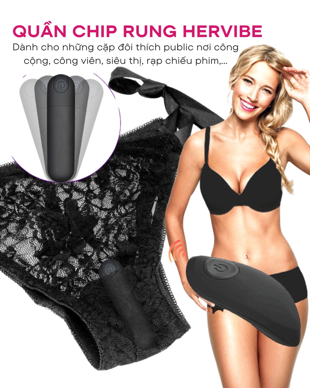 Quần lót rung được nhiều cặp đôi sử dụng vì nó có khả năng thủ dâm hoặc kích dục ở nơi công cộng mà không dễ bị phát hiện. Bạn thử tưởng tượng nàng đang mặc chiếc quần lót rung bên trong vùng kín của nàng. Bạn và nàng đang ở rạp chiếu phim cùng xem một bộ phim lãng mạn, hay cả 2 đang trên ô tô. Bạn hãy chủ động cầm điều khiển và kích dục nàng. Hãy thay đổi tần số rung để kích thích nàng bằng những cơn sóng tình của chip rung. Sau đó. bạn sẽ được thấy những biểu cảm cực kì PHÊ của nàng. Nàng phải kìm nén cảm xúc thăng hoa và cảm xúc muốn được gần gũi bạn hơn bao giờ hết.