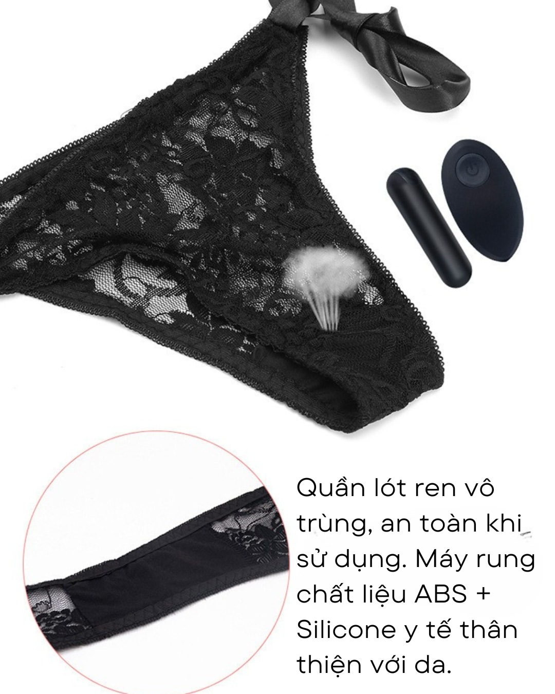 Bộ sextoy cho nữ này đi kèm là một quần lót ren gợi cảm màu đen. Nó giúp tăng cảm giác thèm muốn chinh phục của cánh mày râu. Sản phẩm co giãn 4 chiều, free size. Phần chip rung thì có thể tháo rời và gắn vào đáy quần lót khác. Vì vậy, bạn cũng có thể dùng cùng các quần lót mình yêu thích nhé!