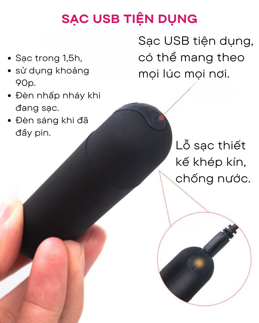 Bộ sản phẩm cũng được nhà sản xuất trang bị bộ sạc đời mới. Thời gian sạc tối đa là 1,5 – 2 tiếng. Bạn có thể thỏa sức sử dụng liên tục trong 1 tiếng. Đây là khoảng thời gian lý tưởng cho một cuộc yêu. Chị em không cần lo lắng sẽ bị mất hứng khi đang sương sướng nhé!