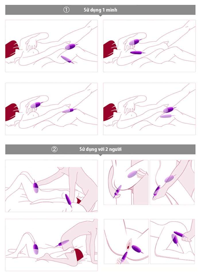 Sản phẩm giúp chị em cảm nhận được những cơn khoái cảm tuôn trào khi đồng thời được 2 trứng rung kích thích, mát xa ở những vị trí khác nhau như: âm đạo, âm vật, nhũ hoa, đùi non, bụng,…v..v…